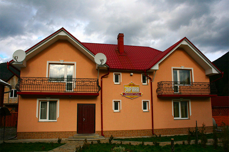 На першому поверсі знаходиться кафе-їдальня з каміном, банкетними столами і телевізором, один «Напівлюкс трьохмісний» і один «Напівлюкс двомісний» номери, а також кухня для самостійного приготування їжі (газова плита, холодильник, мікрохвильова піч, електрочайник, посуд, мийка).