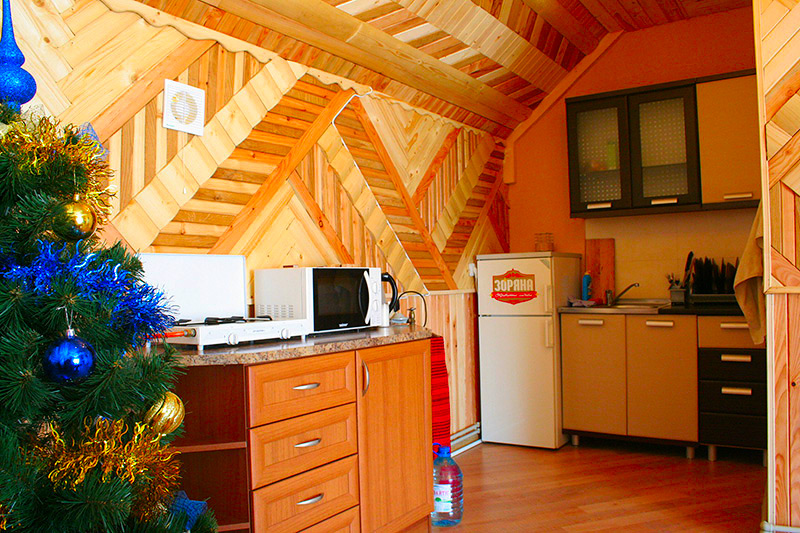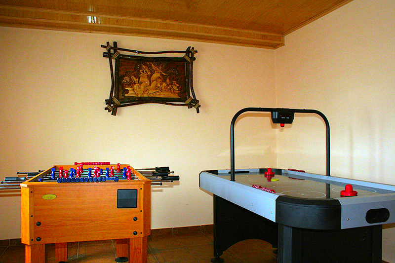 На першому поверсі знаходиться баня на дровах з окремим входом (можливість користування віником), кімната відпочинку (м'які шкіряні крісла та диван, телевізор, шафа, чайник, посуд), ігровий зал (аерохокей, настільний футбол, дартс), душова зі зливним цеберком та санвузол.
